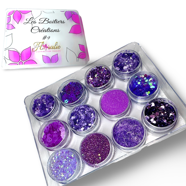 Ce boitier contient 12 couleurs de paillettes différentes.