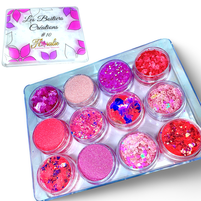 Ce boitier contient 12 couleurs de paillettes différentes.