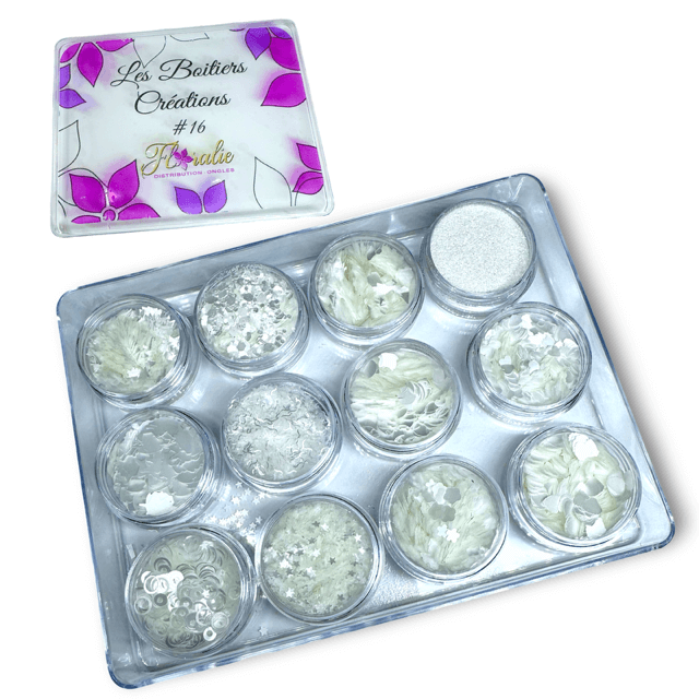Ce boitier contient 12 couleurs de paillettes différentes.