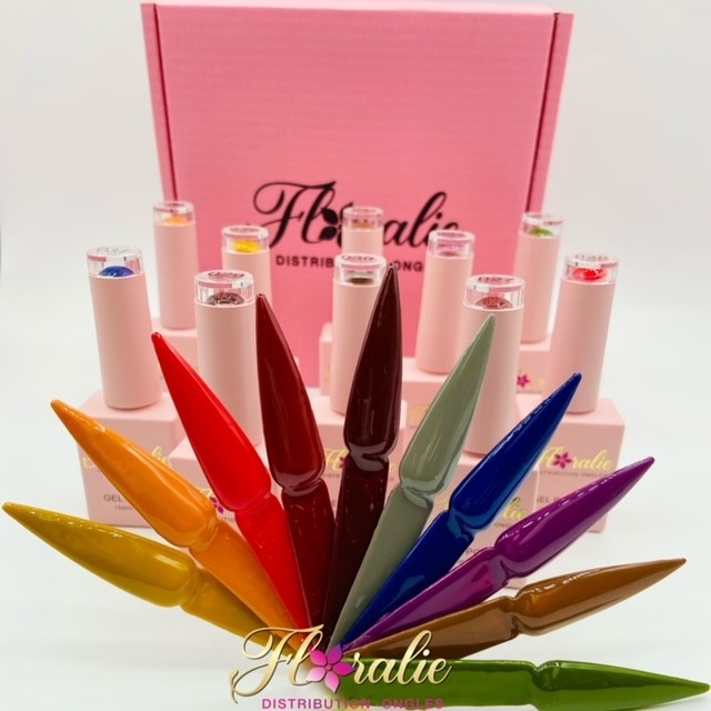 Cette collection comprend les vernis gel floralie du #25 à 34. boite floralie incluse.