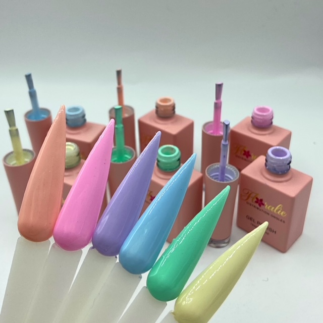 Collection de 6 couleurs de vernis gel pastel .