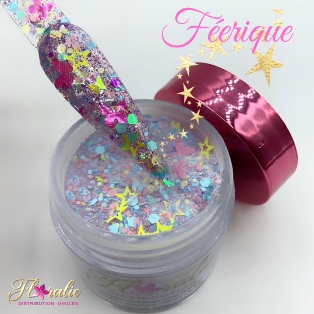 Poudre floralie avec plusieurs paillettes. Pot de 1 once.