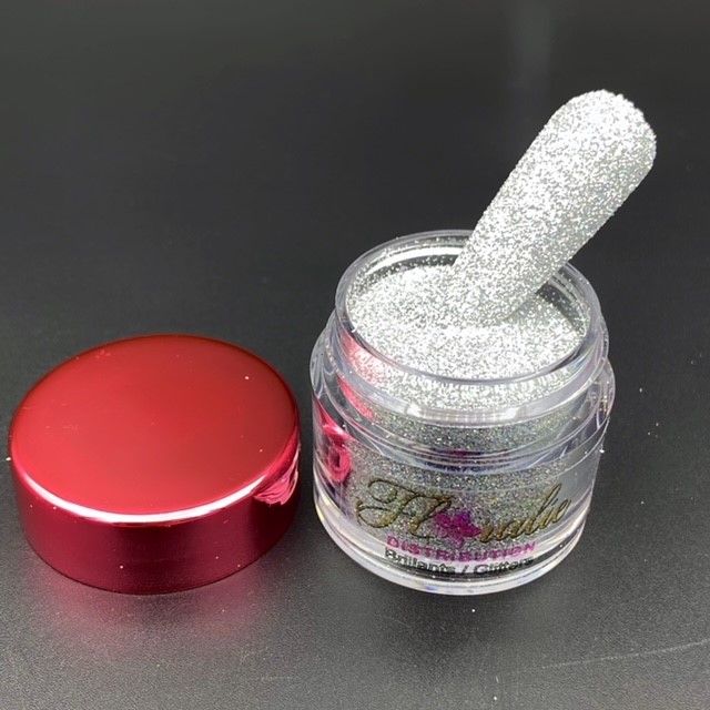 Brillant glamour peut être utilisé en effet sucre ou incrusté. Le argent a un reflet AB cristal. Pot de 1 once