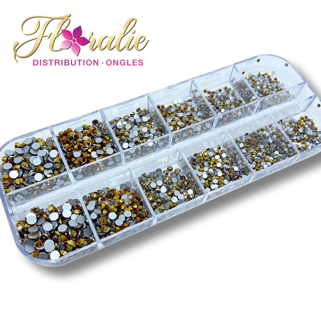 Lot de strass or métallique , 6 grosseurs.