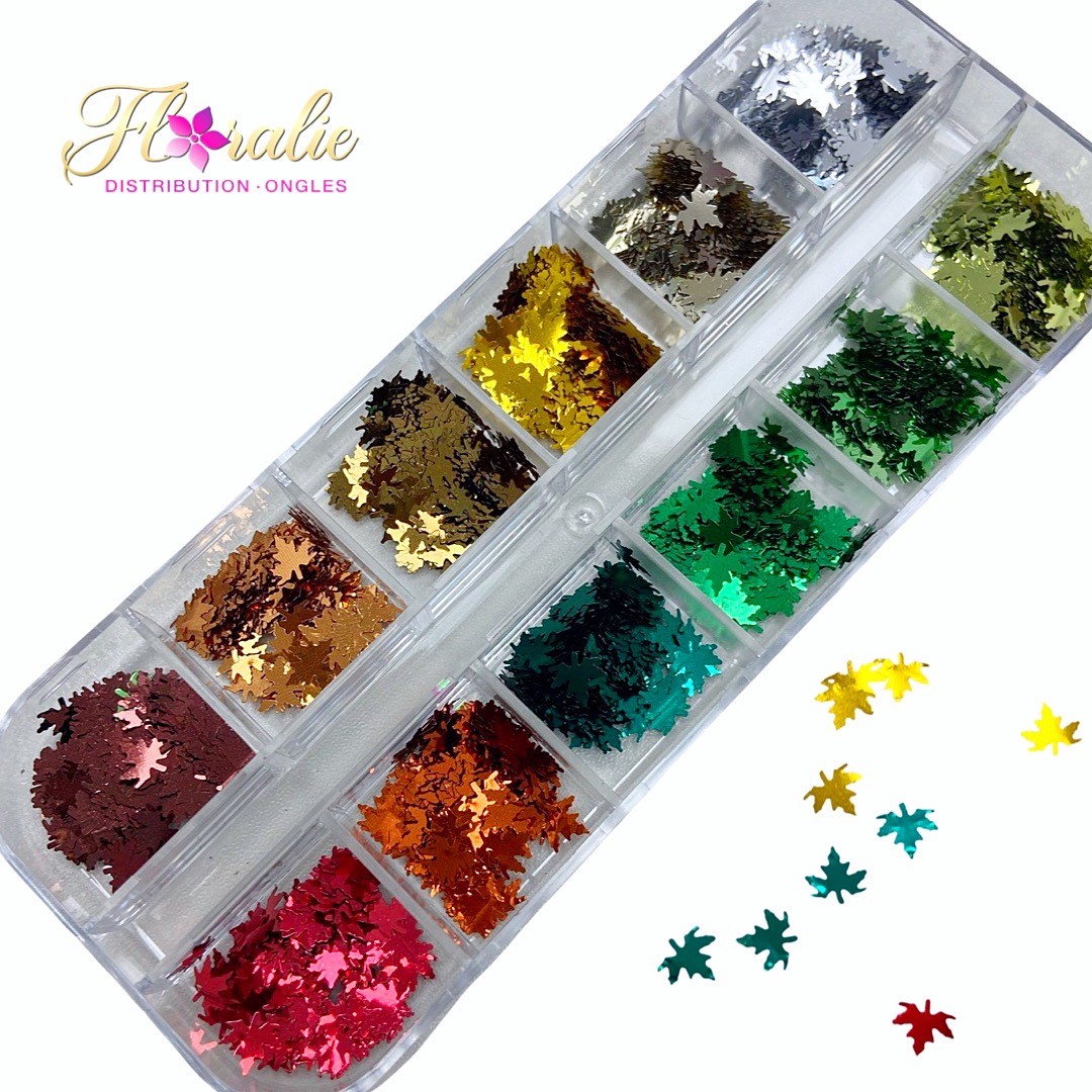 Plusieurs couleurs de paillettes en forme de feuille d’automne.