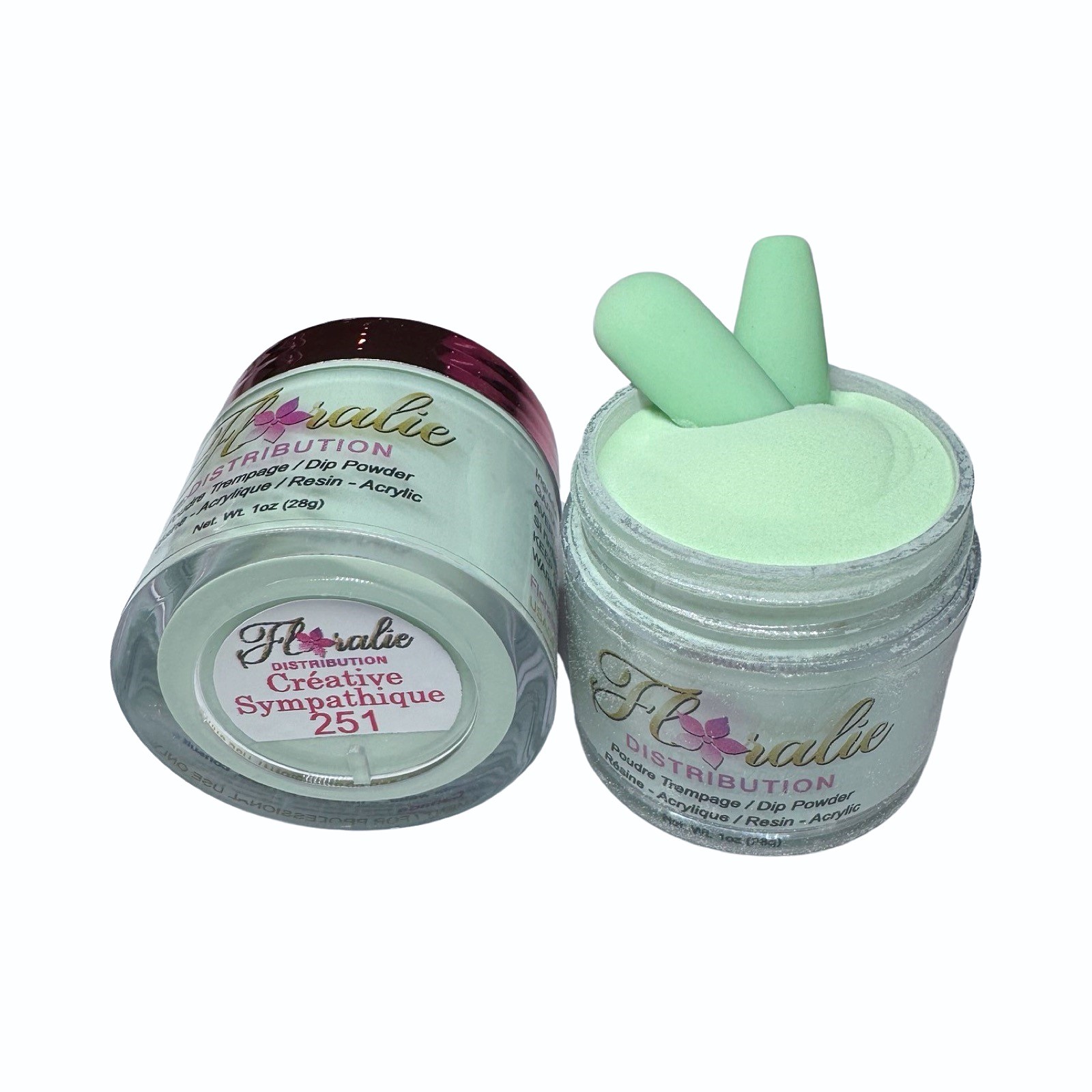 Les poudres Floralie sont compatible avec la résine , l’acrylique et le gel et poudre .