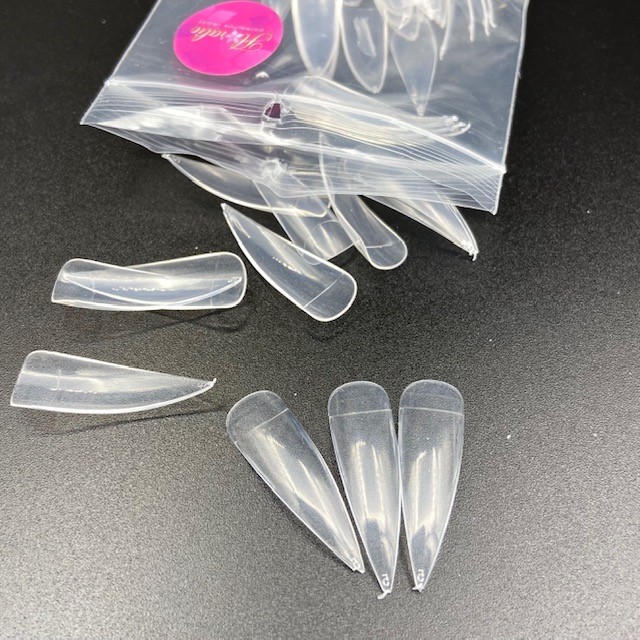 Sac de 50 prothèses de forme pointues bombées transparentes. Grandeur de 0 à 9.