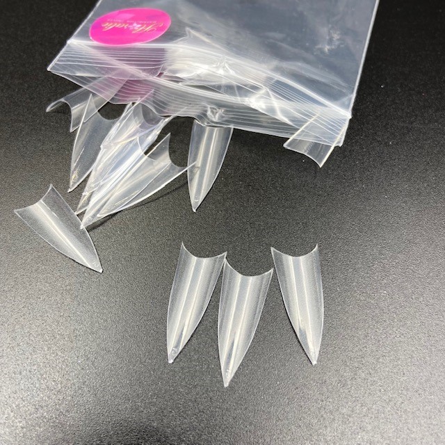 Sac de 50 prothèses de forme pointues plats transparentes. Grandeur de 0 à 9.